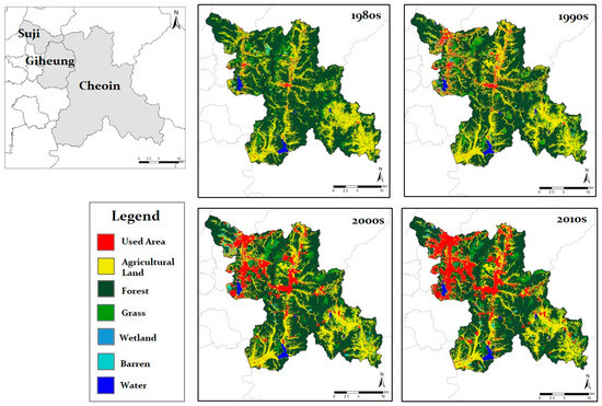 The changes of land cover in Yongin (1980s–2010s).