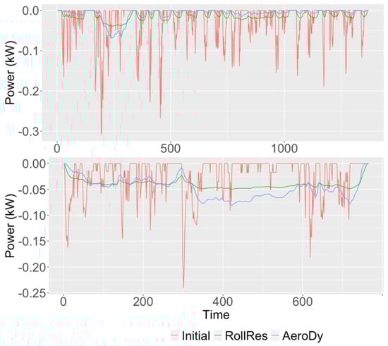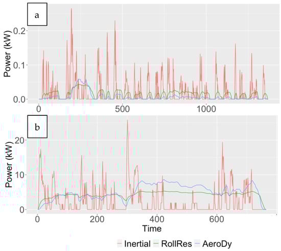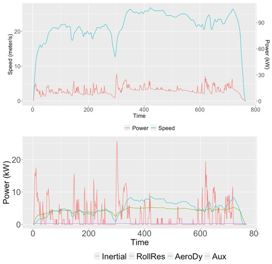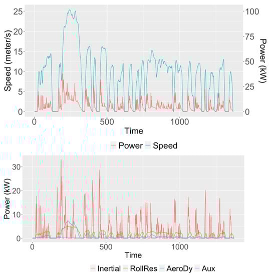 Figure 3 present profiles of urban and highway driving cycles, instantaneous power demand, and its breakdown for the Toyota Corolla. It shows that instantaneous power demand positively relates with vehicle instantaneous speed. For power breakdown, the vehicle inertial power accounts for the largest portion most of the time for urban driving. For highway driving, inertial power is still a major power demand source, but the rolling resistance and aerodynamic power demand sources are the major sources when vehicles are cruising at high speeds.