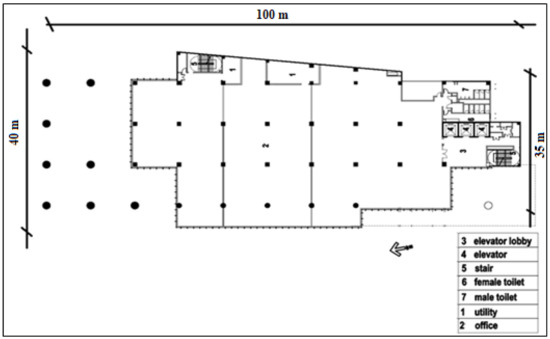 Plan layout of the selected office building—open plan office.