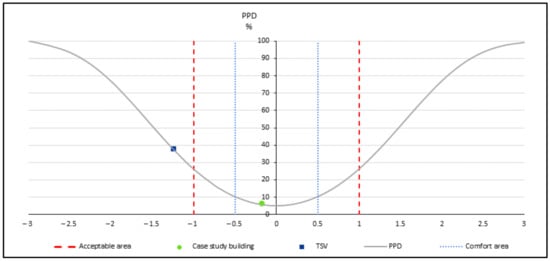 Fanger’s PMV-PPD model was developed to illustrate thermal sensations in seven-point scales resulting from numerous experiments on human subjects in several environments [16]. Fingers’ model provides a set of equations to compute predicted mean vote (PMV) and predicted percentage dissatisfied (PPD).