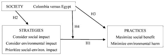 Hypothesis 3 posits that practice differs between Colombia and Egypt, in that practice is more elaborate in Colombia than in Egypt. This hypothesis is tested by the coefficient for society in Table 4. The positive coefficient 1.213 is statistically significant, indicating that the practices of enhancing social benefits and minimizing environmental harm are more prevalent in Colombia than in Egypt, controlling for other conditions. This supports Hypothesis 3.