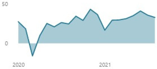 Travel sentiment evolution. Source: UNWTO Tourism Recovery Tracker, retrieved from https://www.unwto.org/unwto-tourism-recovery-tracker accessed on 23 October 2021.