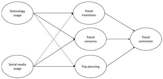 The present time is a unique opportunity to rethink and refresh future destination, tourism, and hospitality offers that are tailored to the new tourist profiles. Yu et al. [20] noted that tourist risk perceptions, impacts on travel, public health, and media coverage are present in most of the literature in a dispersed manner. This study reviewed these different concepts and composed six constructs (social media usage, technology usage, travel intentions, travel concerns, trip planning, and travel sentiment) in an attempt to combine them to reveal the influences of travel sentiment. Moreover, this research attempts to bridge academia and consultants, establishing common ground: travel sentiment equals willingness to travel. Thus, firms can easily find support for their decision in research outcomes from academia or consultancy firms, knowing that they covered the same baselines.