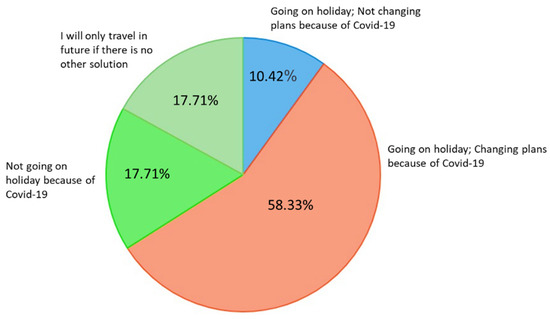 Although none of the participants presented a no-travel background, the COVID-19 pandemic seemed to have influenced their future travel plans, since 17.71% considered not traveling again in the next few years or only doing so in unavoidable circumstances (also 17.71%) (See Figure 8).