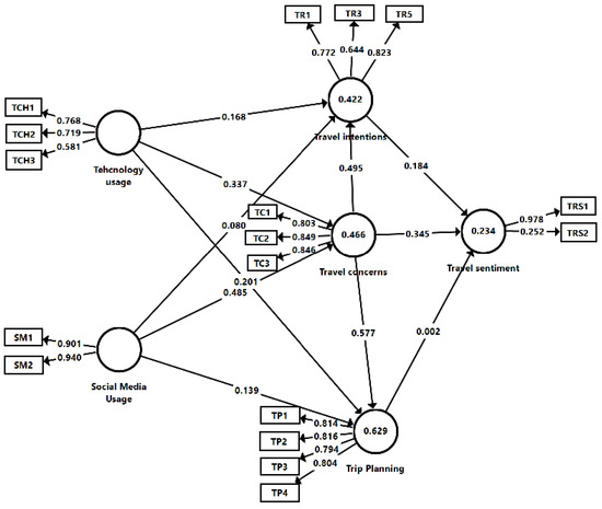 The path analysis revealed that technology usage positively correlates with trip planning and an ever-stronger association with travel concerns and intention. This outcome supports the idea that tourists are aware of the benefits of adopting technology, especially those related to health and safety procedures [36,38,66].