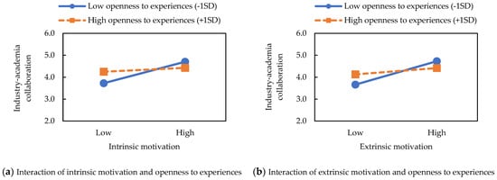 Hypotheses 1 and 2 discuss the simple effect of a researcher’s motivation and personality on IDR/TDR collaboration, but it is also important to examine the effect of these interactions because IDR/TDR involves complicated phenomena [36,60]. Through exploratory hypothesis testing, we attempt to answer one question that concerns many researchers and practitioners: Is there a best match between motivation and personality in promoting IDR/TDR?