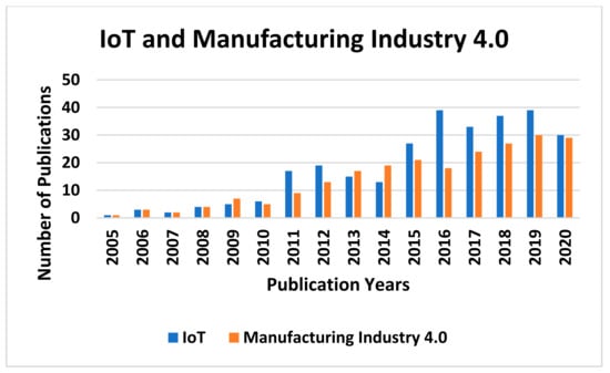 Yearly number of published papers on IoT and manufacturing Industry 4.0.