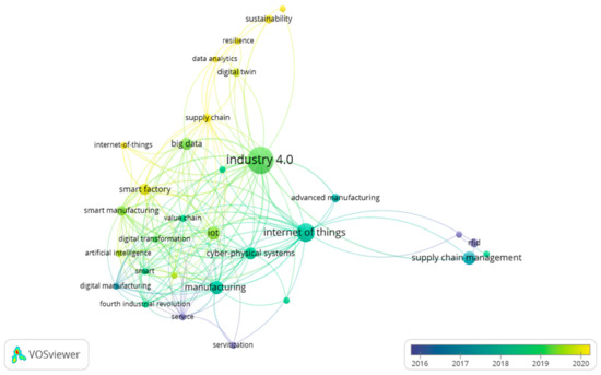 Furthermore, it was found that Industry 4.0 had the highest word frequency due to the most substantial link strength with other words such as IoT, supply chain management, smart factory and manufacturing. In addition, the most recent studies focused on keywords such as smart factory, digital twin, IoT, supply chain and sustainability. This indicates a rapid growth in studies conducted using the keywords mentioned above.