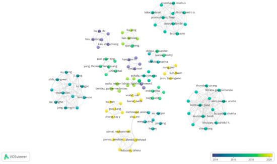 The coauthorship network analysis revealed that the collaboration among the researchers was scattered and dispersed, forming 15 clusters (Figure 8). In addition, the disconnected clusters indicated that the research collaboration within the context of IoT and I4.0 is not well established. This specifies the need to have well-established and collaborative research within the topic under study. It was also found that recent studies within this domain are limited, which is indicated by small-sized clusters.