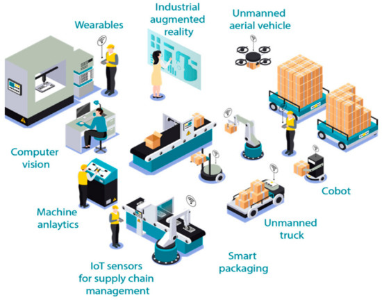 IoT-based smart factory (Reprinted with permission from [30]. Copyright 2020 Kalsoom et al.).
