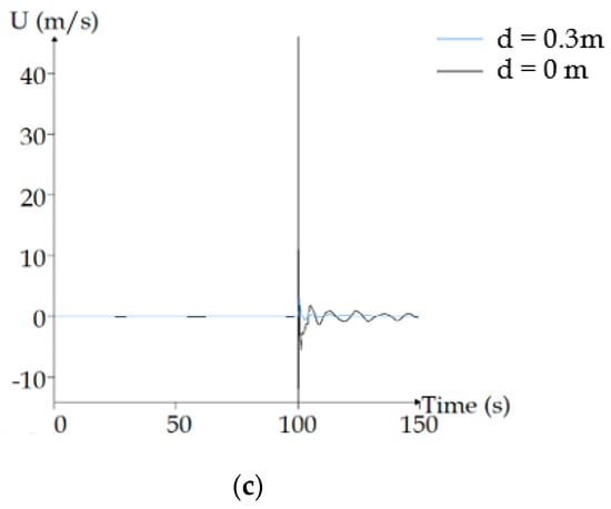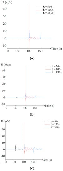 Transient horizontal velocity. (a) At monitoring point M1; (b) at monitoring point M2; (c) at monitoring point M3.