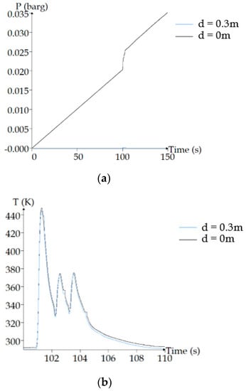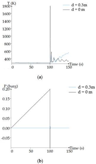 Comparing the simulation results of C2 and H2, it is noted that the resulted surge in temperature and pressure by the explosion at t = 100 s are smaller in the case of hydrogen. However, the explosion risk of hydrogen should not be overlooked.