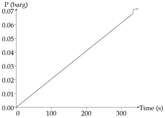 For M1 near the roller shutter inside the garage, the pressure is built up constantly inside of the garage due to the leakage of hydrogen before the ignition as shown in Figure 9. A jump in the pressure is observed at ignition at t = 333 s. However, the small increase in pressure is still far from being sufficient to open roller shutter, although the full tank of hydrogen has leaked out.