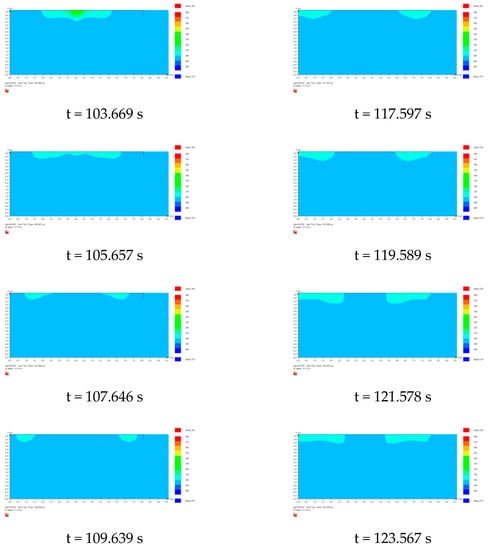 The same simulated garage was used. According to the fuel leak simulation by Swain [38], a hydrogen vehicle leaked 3.4 pounds (1.5 kg) of hydrogen in 100 s. The mass flow rate is then assumed to be 0.015 kgs−1. Taking the Toyota Mirai as a reference hydrogen vehicle in the simulation, the Mirai has two hydrogen tanks with a three-layer structure made of carbon fibre-reinforced polymer and the tanks have a combined capacity of 5 kg. The whole tank would be completely vented out in about 333 s.