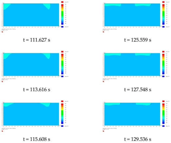 The temperature of hot gas is found much lower than the case of LPG vehicle explosion. Unlike the transient temperature profile in Figure 5, the hot gas region is located at the upper part of the garage and pushed toward the ends of the garage.