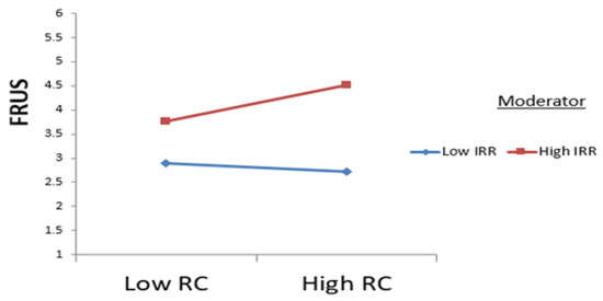 As indicated in H5, the relationship between relationship conflict and frustration is moderated by irritability, thus making this relationship stronger for more irritable people (Table 7). By using the PROCESS technique, results have been obtained that show the significant interaction term (relationship conflict * irritability) (β = 0.233, ΔR2 = 0.3562, p= 0.0006). Similarly, hypothesis 5 is accepted via the bootstrap with a CI of 95%, with lower-limit and upper-limit values (0.15, 0.46) of non-zero. Additionally, at higher levels of irritability, shown in the simple slope test (effect = 0.31, t = 4.03, p = 0.0001), the slope is significant, indicating that the link between relationship conflict and frustration is strengthened when the values are high (Figure 2).