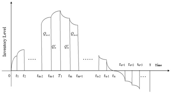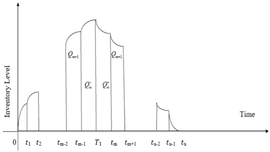 - He, Y.; Wang, S. Analysis of production-inventory system for deteriorating items with demand disruption. Int. J. Prod. Res. 2012, 50, 4580–4592. [Google Scholar] [CrossRef]
