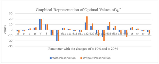 4. The optimal cost of slightly changed in the worth of parameters , moderately with and highly with as shown in Figure 8.