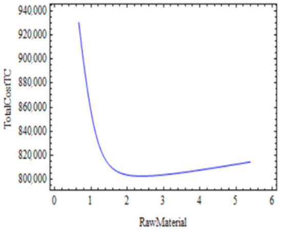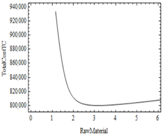 Graphical representation to show the convexity of the total cost is described. The portrayed are raw material (), preservation ( ) and the total cost ( ), along the x-axis, the y-axis and the z-axis, respectively.