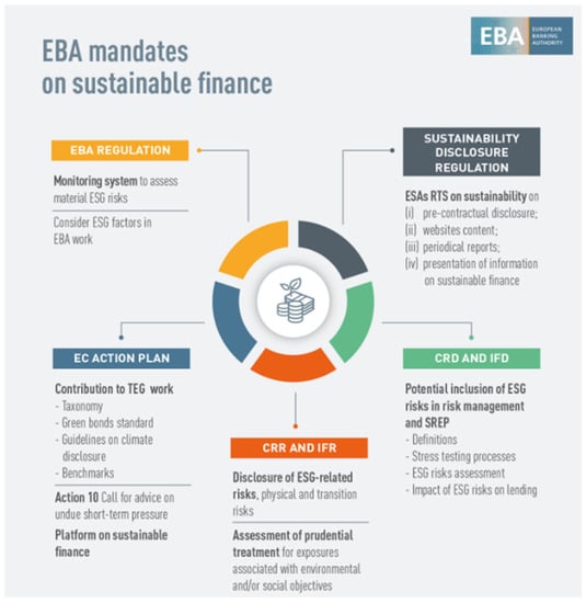 - Sustainable Finance. Available online: https://www.eba.europa.eu/financial-innovation-and-fintech/sustainable-finance (accessed on 14 October 2021).