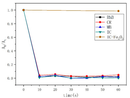 Carbene Ligand-Doped Fe2O3 Composite for Rapid Removal of Multiple Dyes under Sunlight