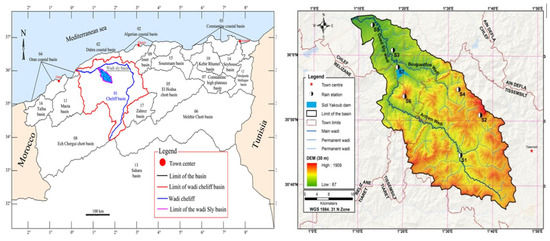 The Wadi Sly basin is located in the northwest of Algeria and has an area of 1225 km2. It is a basin characterized by a typically semi-arid Mediterranean climate, with warm summers and cold winters. The database used in this study consists of seven high-quality and complete monthly precipitation series ranging from 1968–2018, with an average density of one station per 175 km2 (Figure 1).