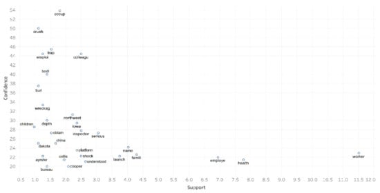 In [], based on a text dataset of accident news, the authors employed text analytics and unsupervised machine learning methods of clustering and multidimensional scaling (MDS) to generate fresh insights regarding wind turbine accidents. Many of these insights revealed the relationship between country, month of the year, and the nature of the accident, such as the foundation of turbines failing frequently in December in Germany. In our study, we also employed unsupervised machine learning methods similar to those in [], yet the methods employed in our study, namely, topic analysis and association mining, were applied for the first time in the analysis of wind turbine accident news.
