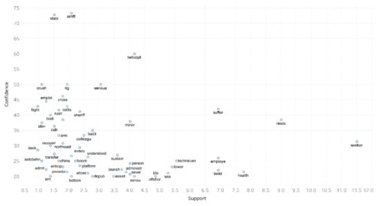 Third, the text of accident news has been analyzed using a multitude of data analytics techniques, some of which are applied for the first time in the domain. While [], as the closest work to this paper, also applies text analytics, the research presented in this paper applies topic modeling through LDA (Latent Dirichlet allocation) for the first time to analyze wind turbine accidents, yielding novel insights. Another unique application is association mining to find relevant terms in the text of the news and the contextual relationship between these terms, and death and injury.