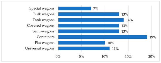 The research results revealed that containers have mainly been used in rail transport, as they are convenient not only to carry freight, but also to easily unload another vehicle, for example, a ship. Thus, it was important to assess means of maritime transport that dominate in freight transport (Figure 5).
