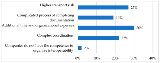 Table 4 illustrates that many factors and problems affect this particular transport interoperability. The authors distinguish the following problems: (1) transit takes place at stations, terminals, and ports only; (2) there are no general rules indicating which rules are to be followed; (3) there is insufficient vehicle compatibility; (4) there is insufficient technical and administrative base; (5) there are lengthy procedures for drafting import and export documents; (6) there is an outdated and underdeveloped infrastructure; and (7) there is no mutual information system for carriers.
