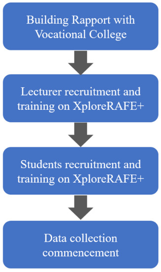 All students willingly participated in this study. Their role in the study was explained and they were given guidance on how to use and familiarize themselves with the XploreRAFE+ mobile application prior to the first round of data collection. Once the lecturer and her students were comfortable with the mobile application, the data collection commenced. Figure 4 illustrates the process of participants’ recruitment.