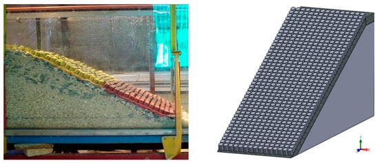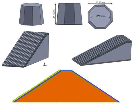 In recent decades, studies focused on internally connected concrete blocks have been conducted in Germany and several other countries, such as the Pilarczyk study in 2003 [7]. The Hughes laboratory study in 2008 performed a 1:25 scale model using concrete block mattress to determine the stability behavior against waves and the rate of flow overtopping. According to the laboratory results, in irregular waves in the 1:3 slopes, the instability of the armoring in breakwater toe was observed due to increase displacement [8]. In line with Wouters’ 1991 research, a study was conducted on such armoring by Gier et al., 2012. The results include deformation of revetment, block stability parameter, and pull-out test [9].