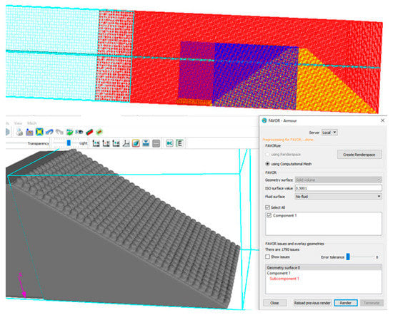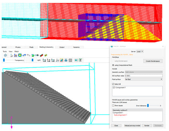 In numerical modeling, one of the most significant parameters affecting the field of numerical solution is the field meshing conditions. Effects of size on the findings should be carefully evaluated. By changing the amount of mesh and utilizing the FAVOR tab, the quality of the mesh can be assessed in showing the geometry to the extent possible. In the introduced calibration model, it consists of three meshing blocks that have 686,625 cells, which are the largest and smallest dimensions of the meter unit for each coordinate direction (Figure 7).