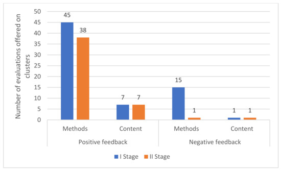 The research approach based on the SKS method is qualitative, so the answers to the questions were quite difficult to interpret. After a thorough reading of the answers, four general categories were established to which the students referred in the feedback provided, according to Table 2, and the answers were grouped into four dimensions, hereinafter referred to as clusters. All data obtained with the SKS method were analyzed on clusters.