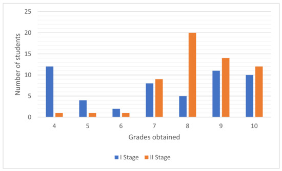 The migration of the teaching–learning activity exclusively in the online environment during the pandemic determined the adaptation of the methods and means used in teaching–learning evaluation, as well as of the communication and management strategies. Online and face-to-face teaching–learning methods have distinct characteristics [55,56,57,58], especially for disciplines that require practical work.