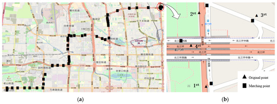(a) Overall matching results for a sampling interval of 120 s; (b) Partial matching results for a sampling interval of 120 s.