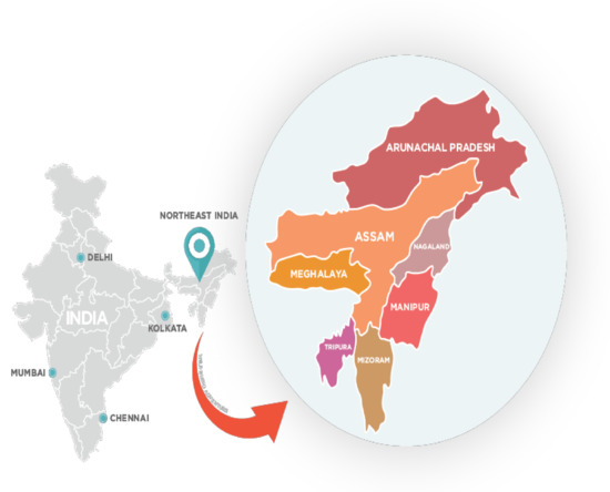 - Northeast India. Available online: https://en.wikipedia.org/wiki/Northeast_India#wildlife (accessed on 14 November 2021).