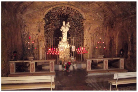 Comparable examples abound, albeit lesser known than the case of Saint Nicholas. Water sources in sacred sites are often integrated into the networks of belief and cultic practices associated with the site. Two other examples may be drawn from Malta, a small Mediterranean island where semi-arid conditions have tended to give added significance to any water source. The first is a water source in the underground rock-cut sanctuary of ‘Our Lady of the Grotto’ in Mellieħa, in the north of the island [29].