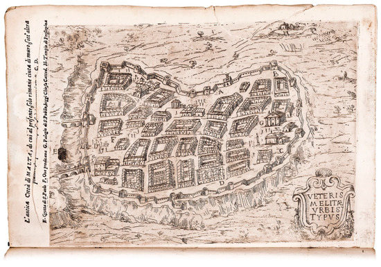 - Abela, G.F. Della Descrittione Di Malta Isola Nel Mare Siciliano Con Le Sue Antichita`, Ed Altre Notitie; Paolo Bonacota: Valletta, Malta, 1647. [Google Scholar]