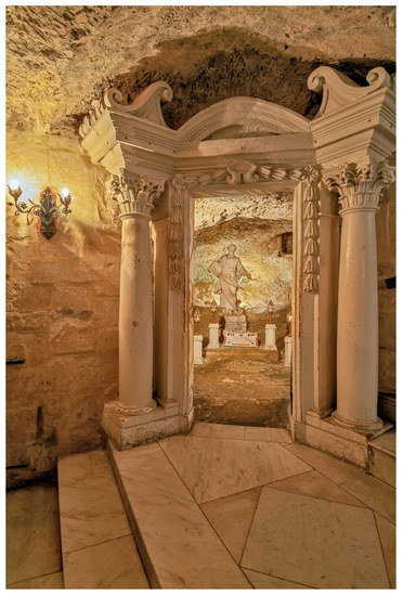- Freller, T. St Paul’s Grotto and Its Visitors: Pilgrims, Knights, Scholars and Sceptics, 2nd ed.; Valletta Publishing: Valletta, Malta, 1996. [Google Scholar]