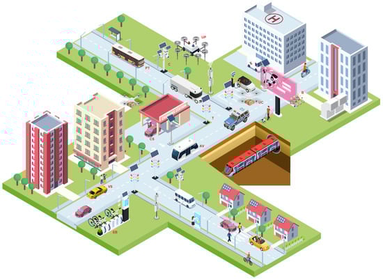 There are a number of definitions of ITS, including a system that leverages technologies such as the Internet, mobile communication, big data, cloud computing, computational intelligence and analysis to improve road safety and manage transportation [1]. In [2], it is defined as an integrated system incorporating communication, control, vehicle sensing and electronics technologies to solve and manage traffic-related challenges. The authors in [3] defined it as a system made up of three major components, the primary transportation infrastructure, including buses, cars, road networks, traffic lights; the transportation management system, such as regulatory bodies, traffic rules; and most importantly, the integration of Information and Communication Technology (ICT), such as the Internet, cellular networks (3G/4G/5G), cloud/fog/edge computing and the Global Positioning System (GPS). Common to these definitions is the infusion of ICT into transport systems. Technologies such as the Internet of Things (IoT) allow for the collection of real-time information about traffic movements from various transport media (cars, buses, boats, trains and planes) and their combination with information from roads, traffic controllers and cameras. These processes generate big data, upon which analytics and/or machine learning algorithms can be applied to obtain useful insights to make informed decisions in real time. This infusion enables services such as carpooling, where passengers with the same or close destinations share a single vehicle, and mobility as a service, wherein multiple transport media/services are aggregated and presented as a “journey package”. ITS also allow for intelligent traffic management through the use of smart traffic lights [4], smart parking [5], accident detection, vehicle surveillance and tracking, license plate identification, path planning and routing and proactive infrastructure management, among others.