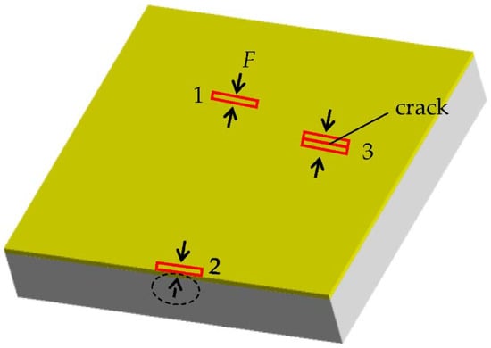 Under the condition that the WSP process parameters remain unchanged, the removal effect of WSP on paint depends on the adhesion between paint and substrate. The greater the adhesion, the more difficult the cleaning. As shown in Figure 5, the area marked by red rectangle 1 and 2 is the unit length, that is, the length of the short side of the rectangle can be ignored. The paint adhesion in internal area 1 is determined by the surrounding adhesion to the area. Suppose the adhesion in one direction is F, the adhesion of this area is 2F. Area 2 is located at the edge of the sample and only one side of the paint is affected by the surrounding adhesion, so the paint adhesion of area 2 is F, which is half as much as area 1. The principle can be understood approximately for the paint surface to produce crack, like the internal area 3 (2 unit length). Cracks appeared on the paint of area 3, making the paint unable to effectively stick together, thus reducing the adhesion of the paint on both sides of the crack, approximately reduced to half of the original. We can denote this phenomenon as a “pseudo-crack”. As a result of the “pseudo-crack” phenomenon, the energy required of removing the edge paint is slightly less than internal. Simultaneously, the water and abrasives of WSP cleaning are more likely to enter the paint interior, which both causing width of the removal of the paint at the edge higher than the internal part. Therefore, increasing paint surface crack is an effective way to improve cleaning efficiency.