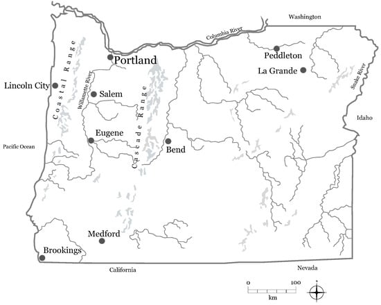 - Clucas, R.A.; Henkels, M.; Steel, B. (Eds.) Oregon Politics and Government. Progressives versus Conservative Populists; University of Nebraska Press: Lincoln, NE, USA, 2005. [Google Scholar]