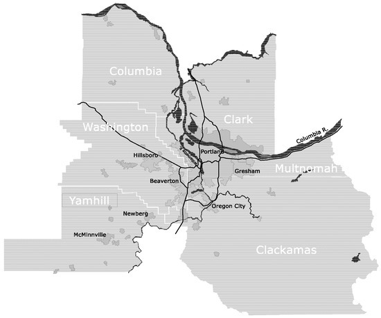 - Abbott, C. Greater Portland: Urban Life and Landscape in the Pacific Northwest; University of Pennsylvania Press: Philadelphia, PA, USA, 2001. [Google Scholar]