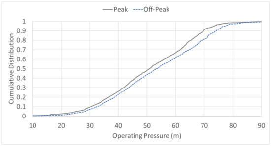 Consumptive node operating pressure cumulative distribution.