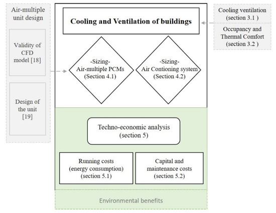 Structure of the work: techno-economic analysis and environmental benefits of air-multiple PCM unit and AC system.