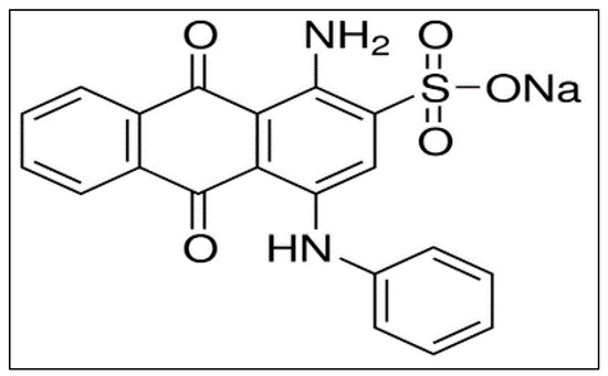 Contaminated water with Acid Blue 25 Dye solution was prepared by dissolving an appropriate amount of dye in distilled water. Figure 1 and Table 1 show the compound structure of Acid Blue 25. Acid Blue 25 is widely used to color leather during the manufacturing process and in dyeing nylon, paper, and PC blends. It is mostly utilized for cellulose and polyamide to support the dye. Acid Blue 25 dye is also utilized in wool, nylon, modified acrylics, silk, leather, paper, ink-jet printing, and cosmetics. It is usually soluble in water. Azo (including premetallized), anthraquinone, triphenylmethane, azine, xanthene, nitro, and nitroso are the most common chemical classes of these colors. Acid Blue 25 dye is also suitable for dyeing and printing silk, wool, and mixed fabrics and is good for leather, electrically controlled aluminum soap, and color [14].