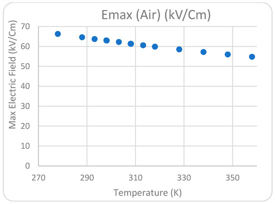 The suggested model was created with 2D simulation software to determine the optimal temperature degree for the operation at a particular voltage of 15 kV. Understanding the creation of ozone and active radicals and the voltage and field distribution in the air gap distance between the two conductors is necessary to explain the dynamics of corona discharge. The easiest method to optimize corona devices is understanding the corona onset voltage and electric field, which may be determined using voltage and field distributions [21,22,23,24,25]. The states of limit for the potential are straightforward at the high-voltage corona electrodes and zero voltage at the ground electrodes (Dirichlet limit conditions). This observation indicates that the electric field rises relatively to the voltage beneath the corona discharge plasma; however, its incentive is protected as soon as the corona streamers begin. In the model, the amount of electric field depends on two factors: radius of curvature and voltage being applied. Corona discharge is restricted to a tiny region close to the minor radius wire in the air. Numerous physiological processes occur in this zone; their modeling is too complicated to address when dealing with many practical situations. The potential and electric field variations in a dual pin-to-plate reactor were investigated with the instruments presented. The findings were obtained using a product suite that solves the partial differential equations using the FEM. The plot results of the numerical simulation of dual pins to the plate corona discharge reactor at various ambient temperatures of 25, 24.85, 40, and 30 °C, are shown in Figure 7.