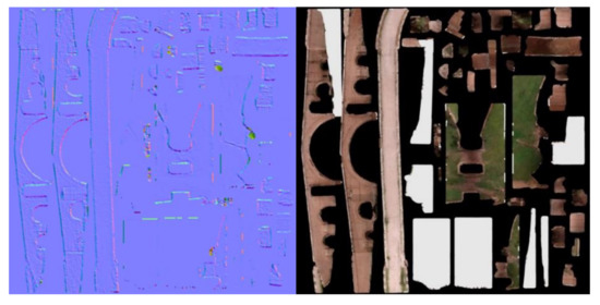 - Application of texture. Texturing is the operation in which 3D models are afforded a skin, and virtual objects a real appearance. Texture is introduced by automatic orientation and rectification of each photo adapted to the model from its vantage point. The result is a texture map which more often than not is confusing, for the texture cannot be matched with the naked eye to the parts comprising the model (Figure 4). During subsequent optimisation, the texture is oriented by a process known as baking. The texturised 3D model obtained is optimised prior to entry in dissemination tools with 3D image modelling and edition software such as InstantMeshes [76] and Blender [81] to reduce model size for readier handling.