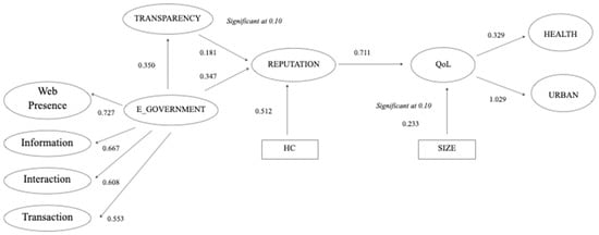Finally, and regarding the aforementioned control variables, our results also indicate that human capital (proxied by the percentage of city population with a university degree) and city size (proxied by the per capita municipal expenditure) explain, in part, reputation and QoL, respectively. However, this does not prevent the confirmation of the hypotheses that make up the proposed model.